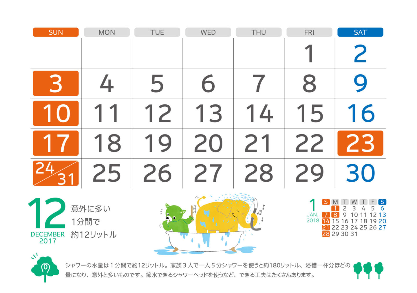 エコカレンダー 2017 2025-10-08 goic Calendar Character ILLUSTRATION 収益金の一部が「緑の募金」として国内外の森林づくりに活用される、卓上カレンダーのイラストを制作しました。エコくまグリンが川柳を交えて環境の豆知識を紹介します。 Calendar|2016 Client:アインズ Design:アインズ