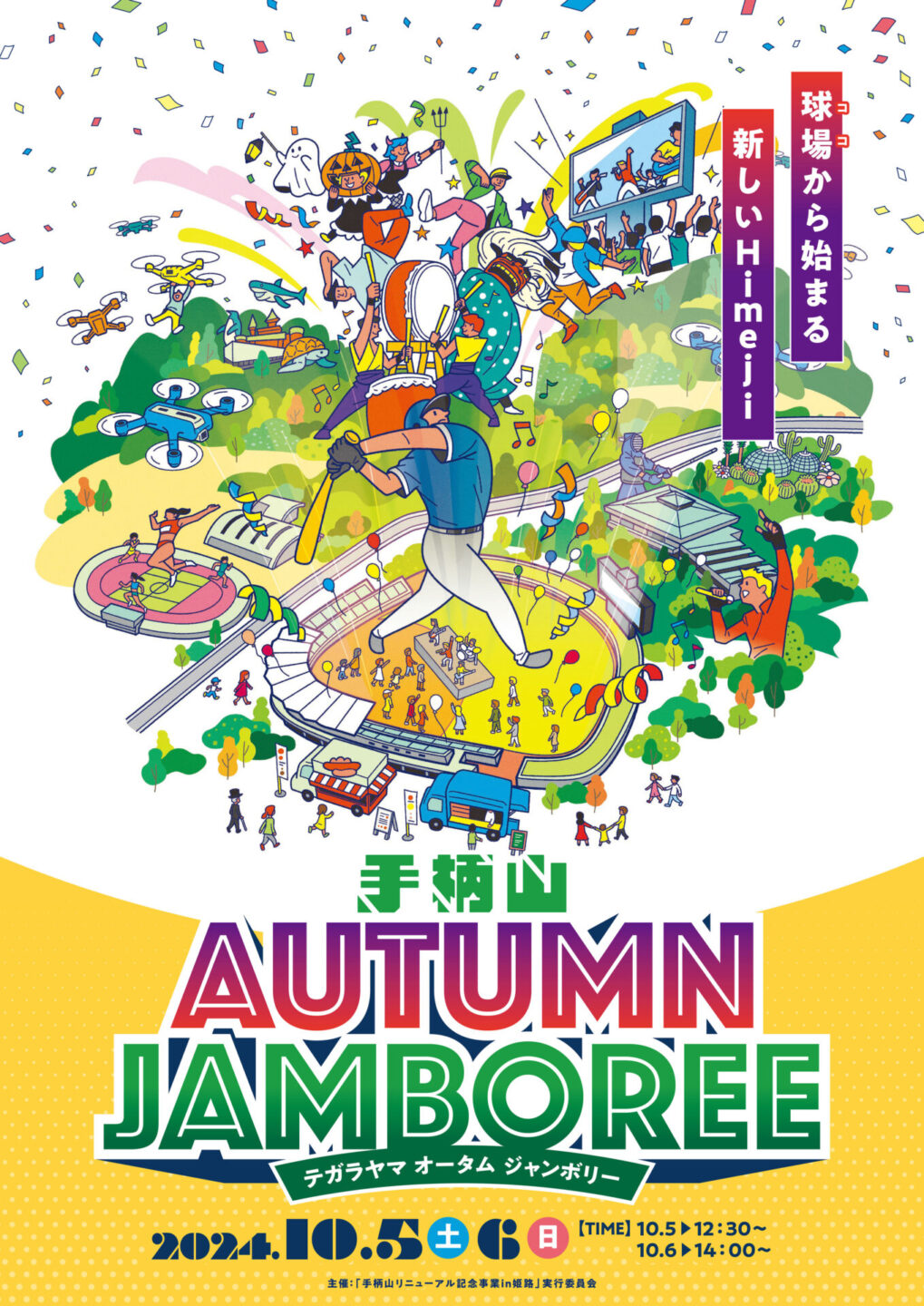 手柄山 AUTUMN JAMBOREE 2025-10-04 goic Advertising ILLUSTRATION 姫路市の球場リニューアルに合わせたイベント告知用イラストを制作しました。 Advertising|2024 Client:「手柄山リニューアル記念事業in姫路」実行委員会 Design:ラフ