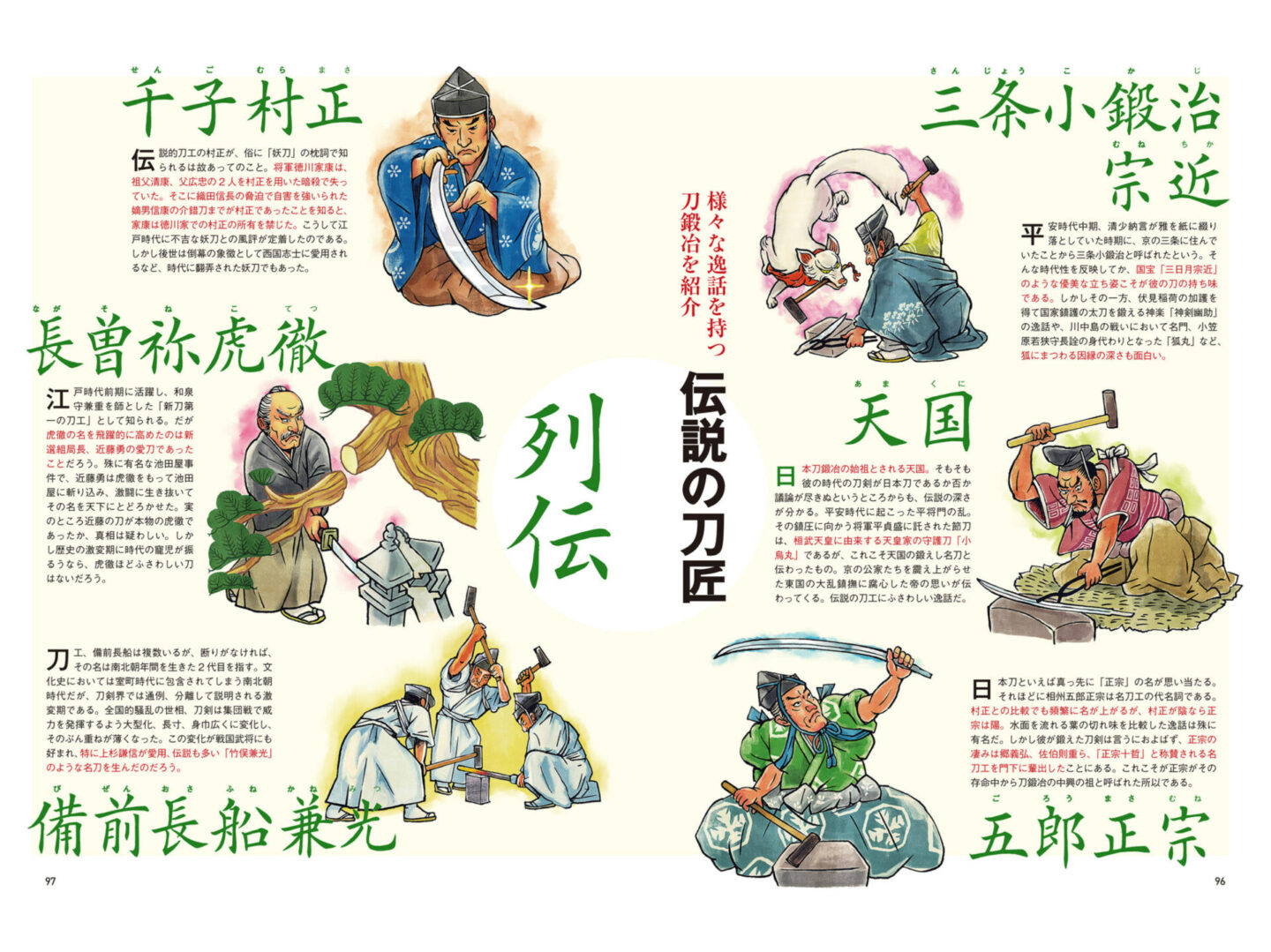 歴史探訪 vol.3「日本刀 美と魂」 2025-10-04 goic Cut ILLUSTRATION 刀鍛治紹介ページ「伝説の刀匠列伝」イラストを制作しました。 Illust Cut |2019 Client:歴史探訪編集部