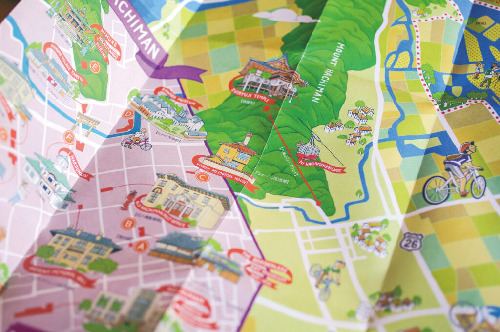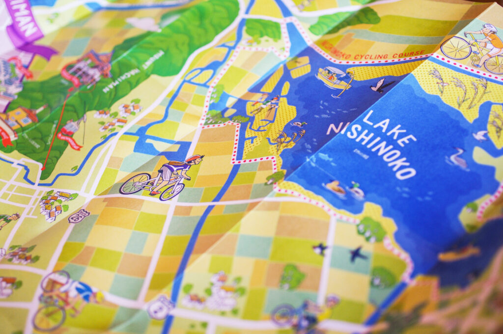 西の湖周遊 CYCLING MAP 2025-10-02 goic ILLUSTRATION Map 滋賀県近江八幡にある、西の湖周遊サイクリングマップのイラストを制作しました。 Illustration Map|2014 Client:近江八幡観光物産協会 Design:アインズ
